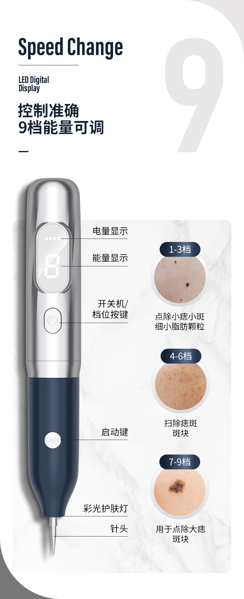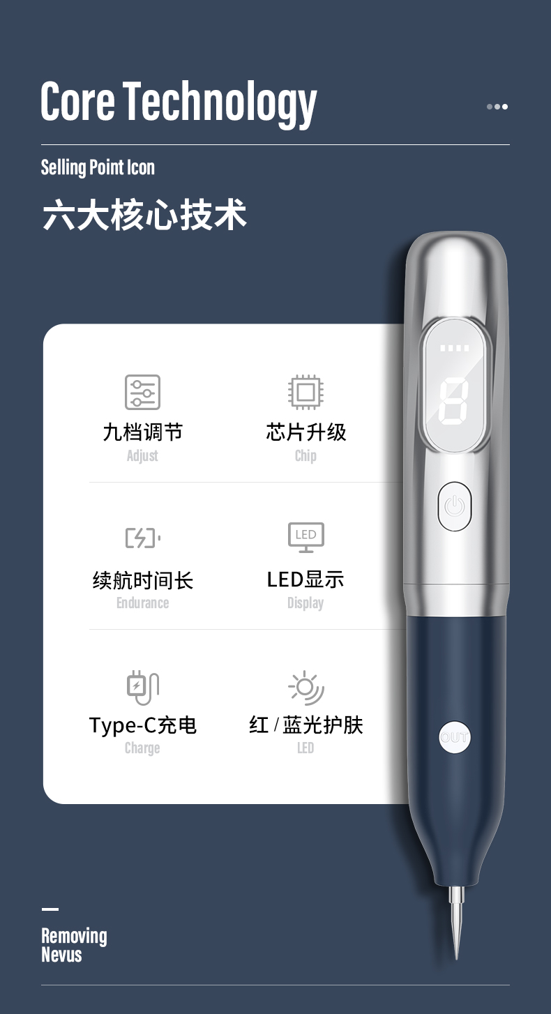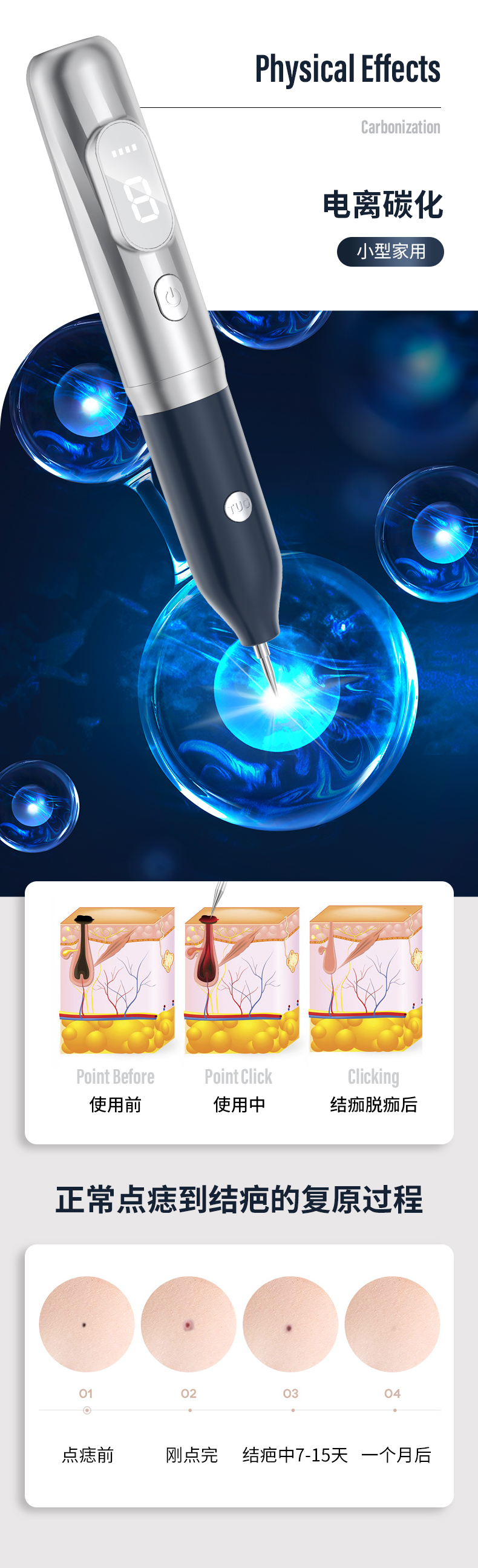 点痣扫斑美容仪 九档调节 芯片升级 续航时间长 LED显示 Type-C充电 红/蓝光护肤 LED 耀现美肤 电离子碳化 院线级效果