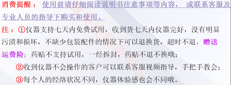仪器需要配合药液类的产品使用,药液配合仪器做渗透可以导入至穴位,不仅达到仪器效果还可以达到药液的效果。