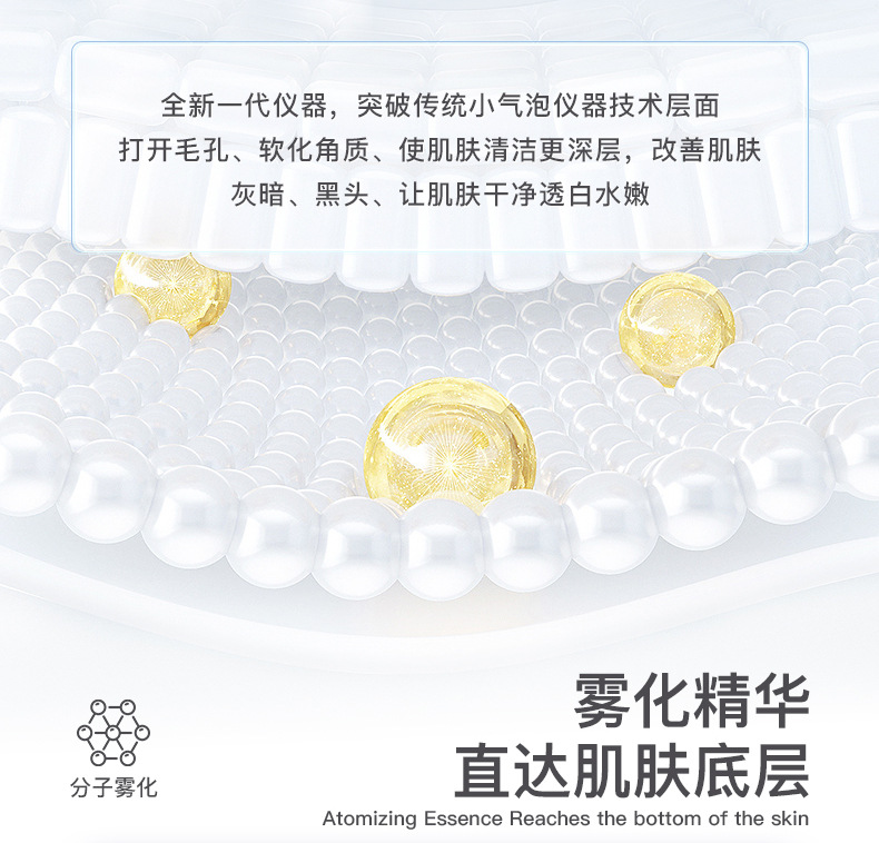 全新一代仪器,突破传统小气泡仪器技术层面打开毛孔、软化角质使肌肤清洁更深层,让肌肤干净透白水嫩。