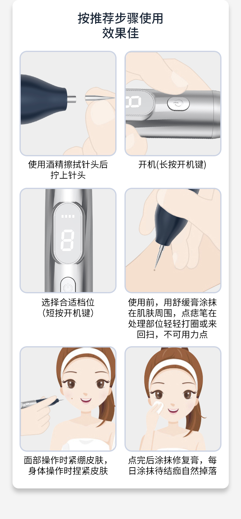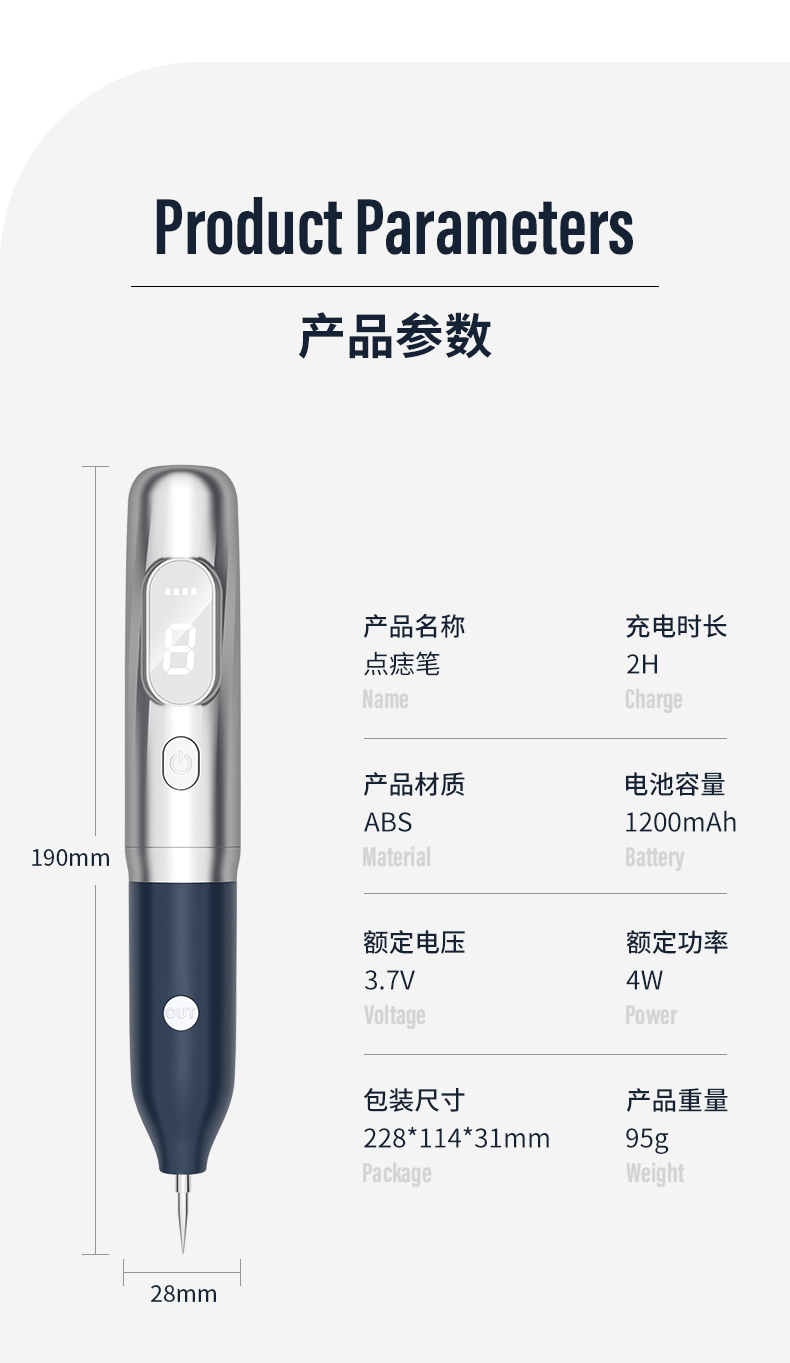点痣扫斑美容仪 九档调节 芯片升级 续航时间长 LED显示 Type-C充电 红/蓝光护肤 LED 耀现美肤 电离子碳化 院线级效果