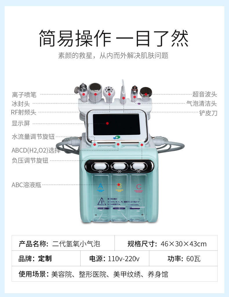二代氢氧小气泡 面部清洁 收紧肌肤 H滋润补水 修护皮肤 六合一多功能一体美容仪 清洁焕肤 导入营养 素颜亮肤 紧肤提拉