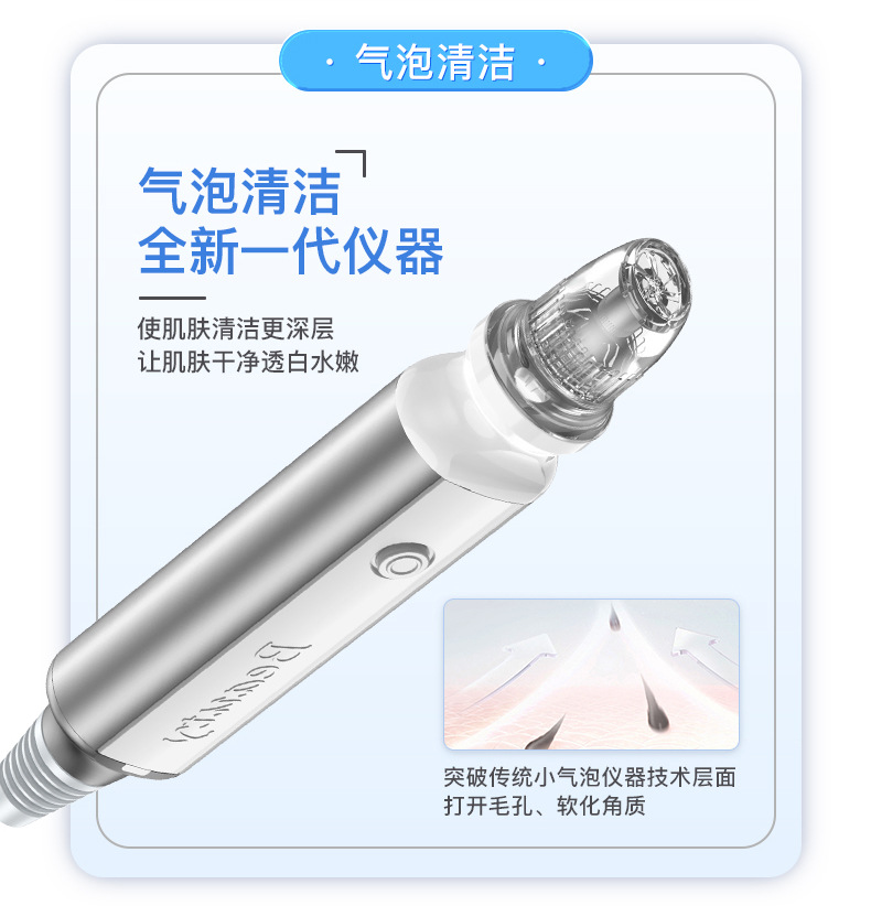 全新一代仪器,突破传统小气泡仪器技术层面打开毛孔、软化角质使肌肤清洁更深层,让肌肤干净透白水嫩。