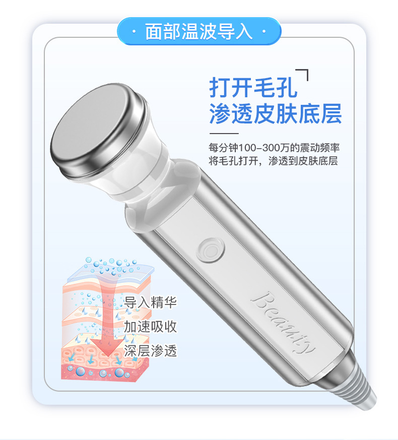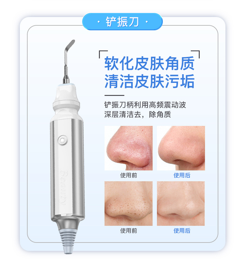 铲振刀柄利用高频震动波软化皮肤角质细胞深层清洁皮肤污垢。